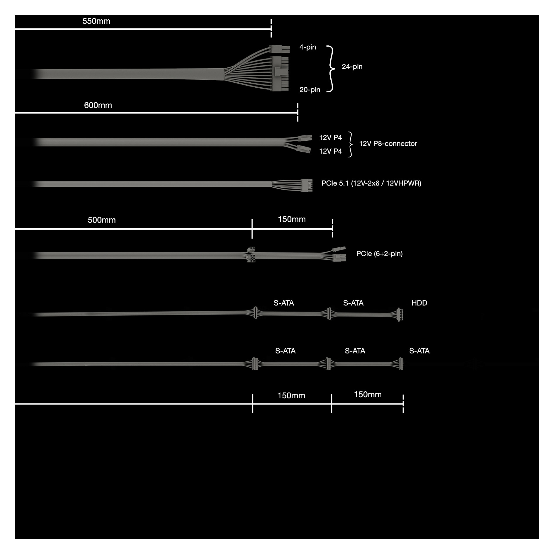 SATA-Netzkabellänge: 500.650.800 mm