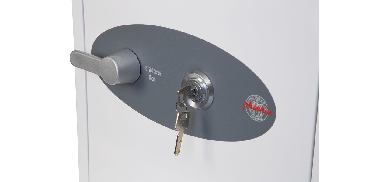 Phoenix Safe Co. FS1282K. Typ: Frei stehend sicher, Produktfarbe: Weiß, Schloss Art: Schlüssel. Breite: 350 mm, Tiefe: 430 mm, Höhe: 410 mm